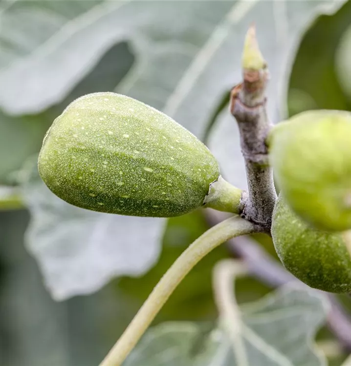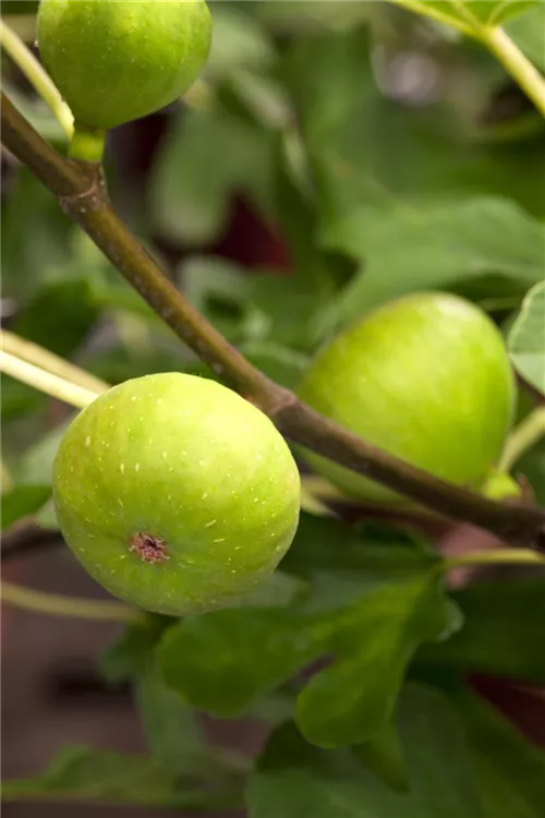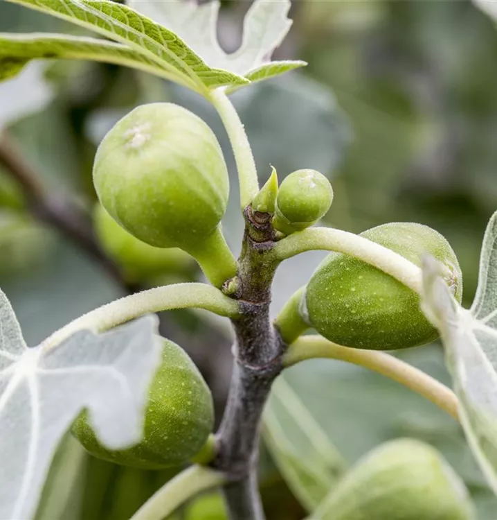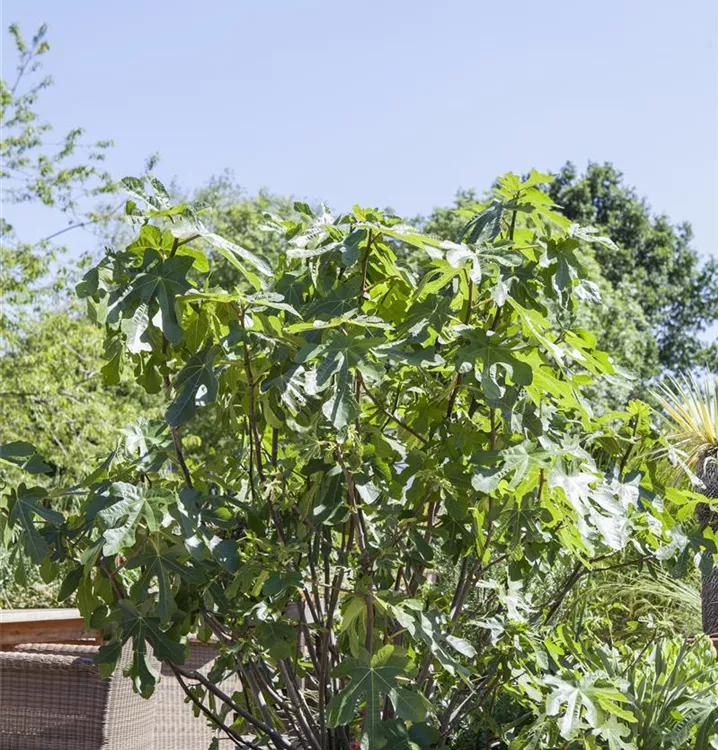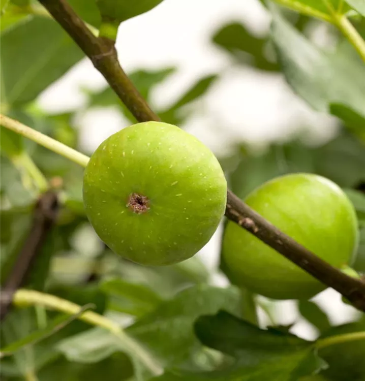 Die Echte Feige (Ficus carica) bildet braune, gelb-grüne, violette Früchte. Sie sind birnenförmig und haben einen süßen Geschmack. Für eine ertragreiche Ernte ab August schaffen durchlässiger, lehmiger Boden und ein sonniger Standort optimale Bedingungen. Auch ihre weißen Blüten sind eine schöne Erscheinung.
