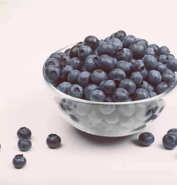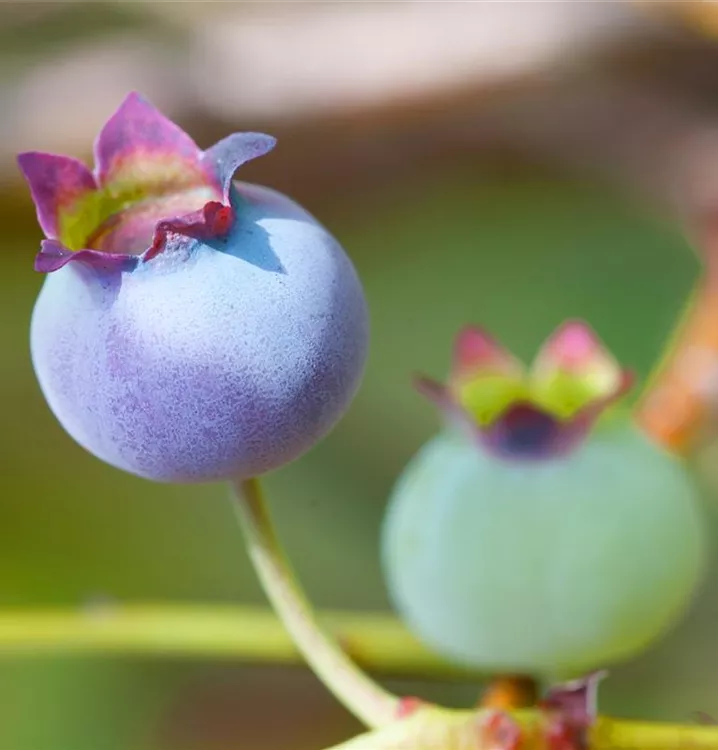 Die Amerikanische Heidelbeere (Vaccinium corymbosum) bildet blaue Beeren. Diese sind süß-säuerlich im Geschmack. Für eine ertragreiche Ernte ab Juli schaffen humoser, sandiger, feuchter bis nasser Boden und ein sonniger bis halbschattiger Standort optimale Bedingungen. Auch ihre hellrosafarbenen Blüten sind eine schöne Erscheinung.