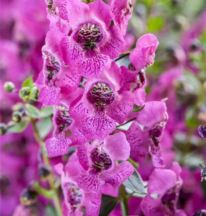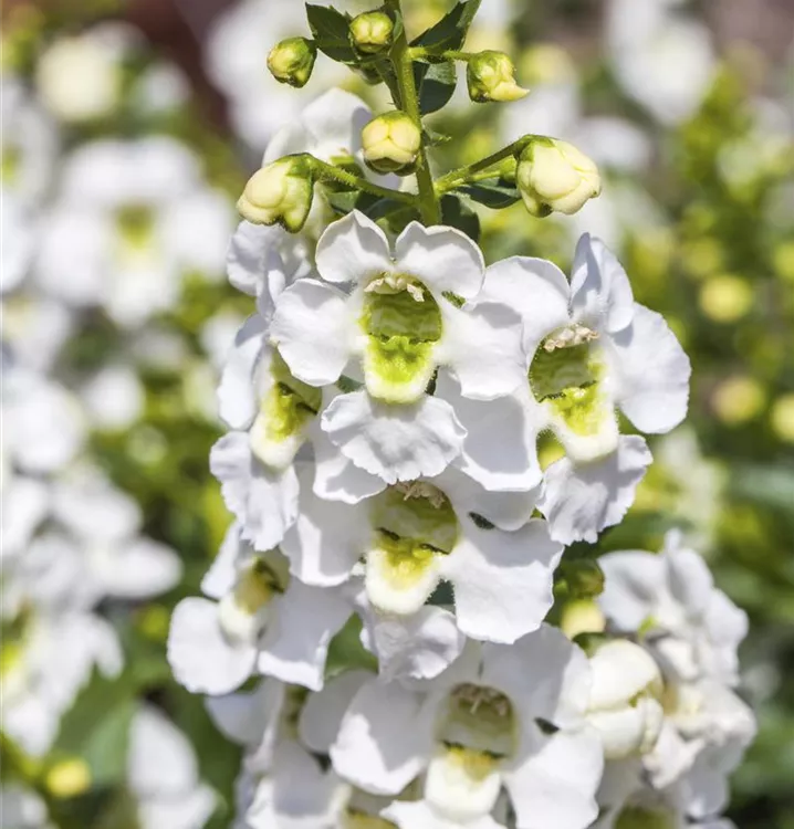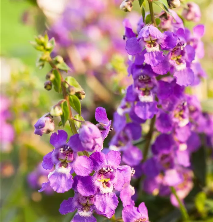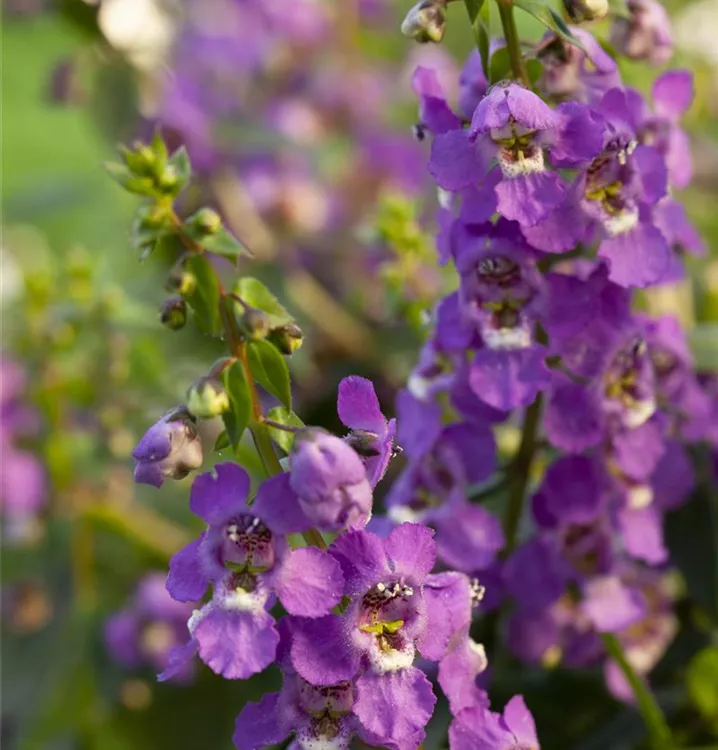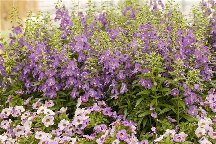 Angelonia hybrid kann eine Höhe von 30 - 40 cm und eine Breite von 30 - 40 cm erreichen. Rasch wachsend.