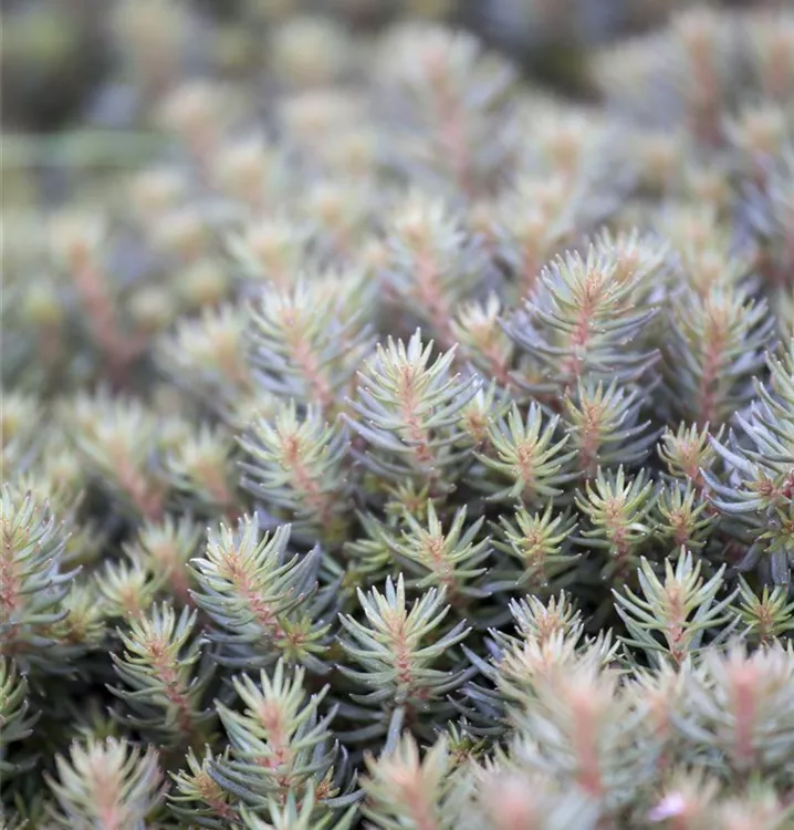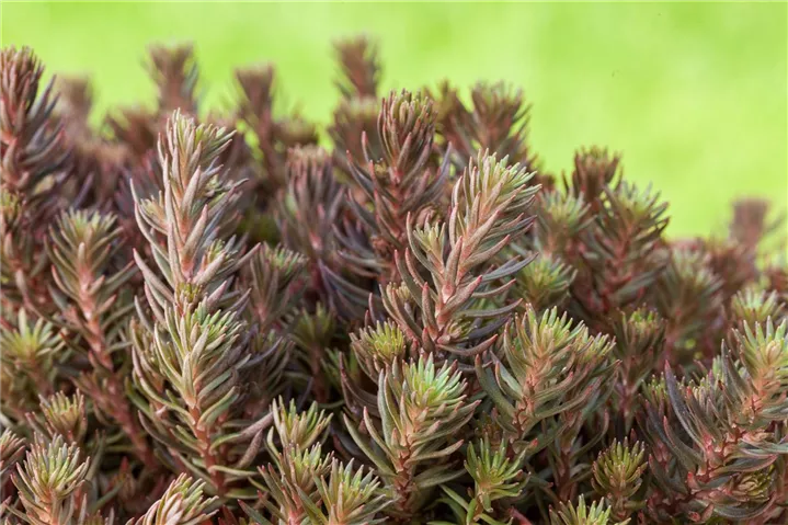 Das Nickende Garten-Fettblatt (Sedum reflexum) ist eine lockere, kriechende, teppichartige wintergrüne Staude, die von Juli bis August gelbe, in Dolden angeordnete Blüten bildet. An einem sonnigen Standort mit durchlässigem Boden erreicht es gewöhnlich eine Höhe von ca. 25 cm und wird ca. 25 cm breit. Das Nickende Garten-Fettblatt ist gut frostverträglich.