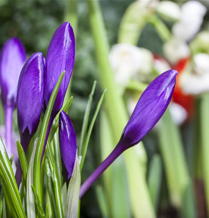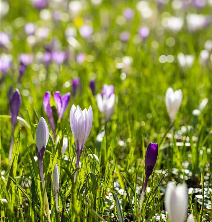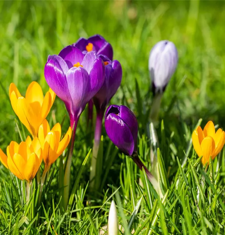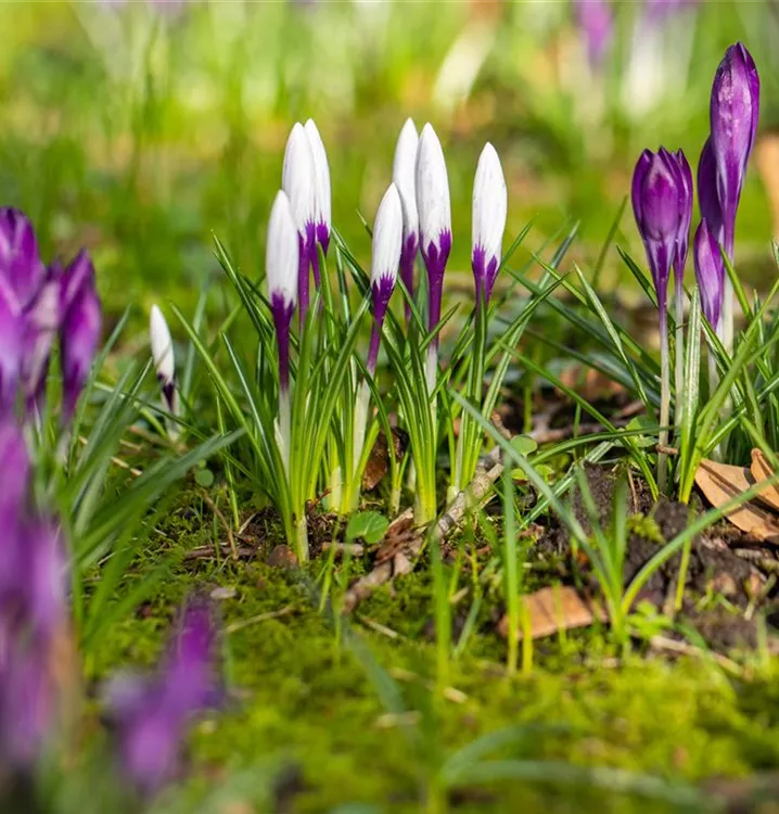 Der Frühlings-Krokus (Crocus vernus) blüht über Monate hinweg. Je nach Sorte, erscheinen die dekorativen Blüten in den Farben Weiß, Gelb, Blau und Lila. Bevorzugt wird ein sonniger bis halbschattiger Standort und eine durchlässige Erde.