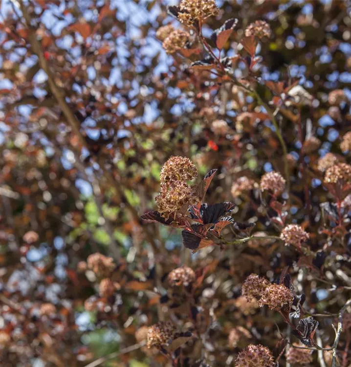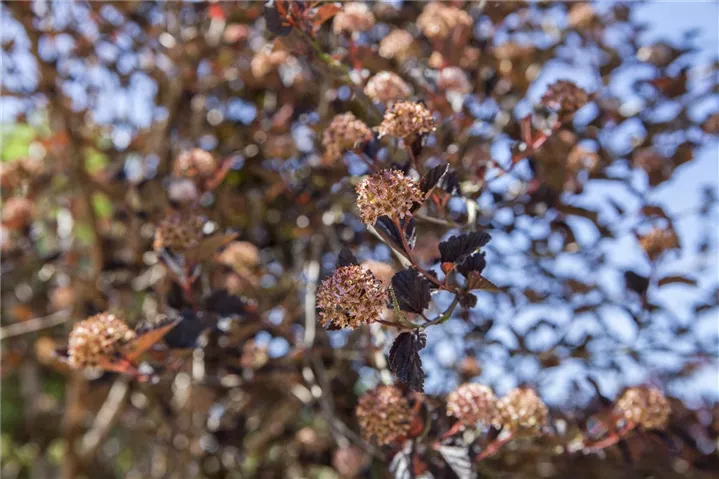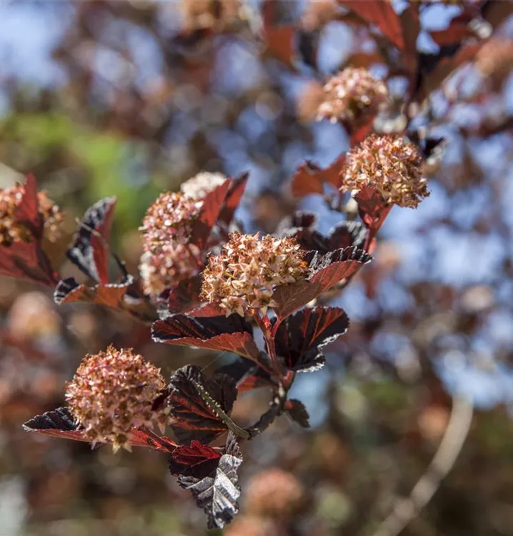 Die Fasanenspiere (Physocarpus opulifolius) ein buschiger, aufrechter Großstrauch, der, je nach Sorte, Blüten in verschiedenen Farben hervorbringt. An einem sonnigen bis halbschattigen Standort mit durchlässigem Boden erreicht sie gewöhnlich eine Höhe von ca. 5 m und wird ca. 3 m breit.