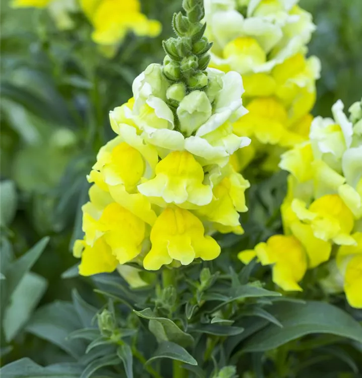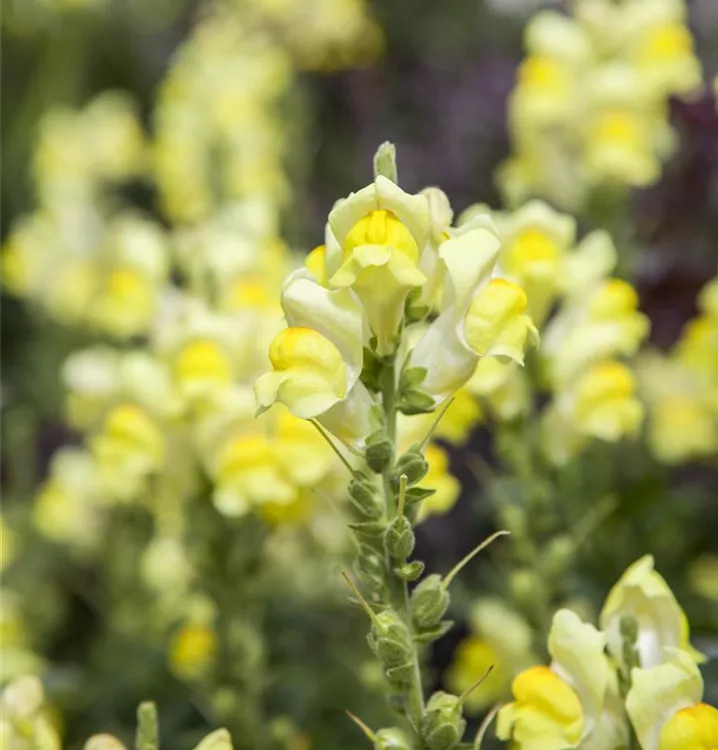 Das Große Löwenmaul (Antirrhinum majus) ist eine beliebte Pflanze für den Balkon, die während der gesamten Saison unzählige gelbe Blüten bildet. Ein sonniger bis halbschattiger Standort und ein durchlässiges Substrat werden bevorzugt.