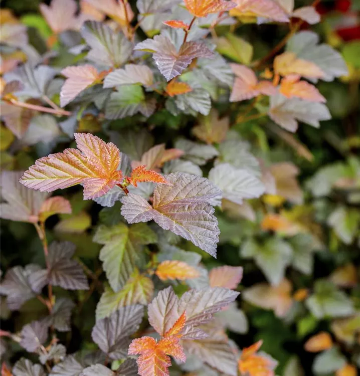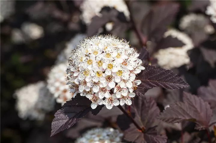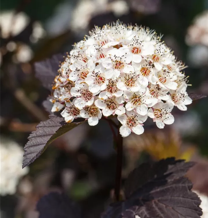 Die Fasanenspiere 'Summer Wine'® (Physocarpus opulifolius) ist ein buschiger, aufrechter, Kleinstrauch mit dekorativen sommergrünen, eiförmigen, dunkelroten Blättern.