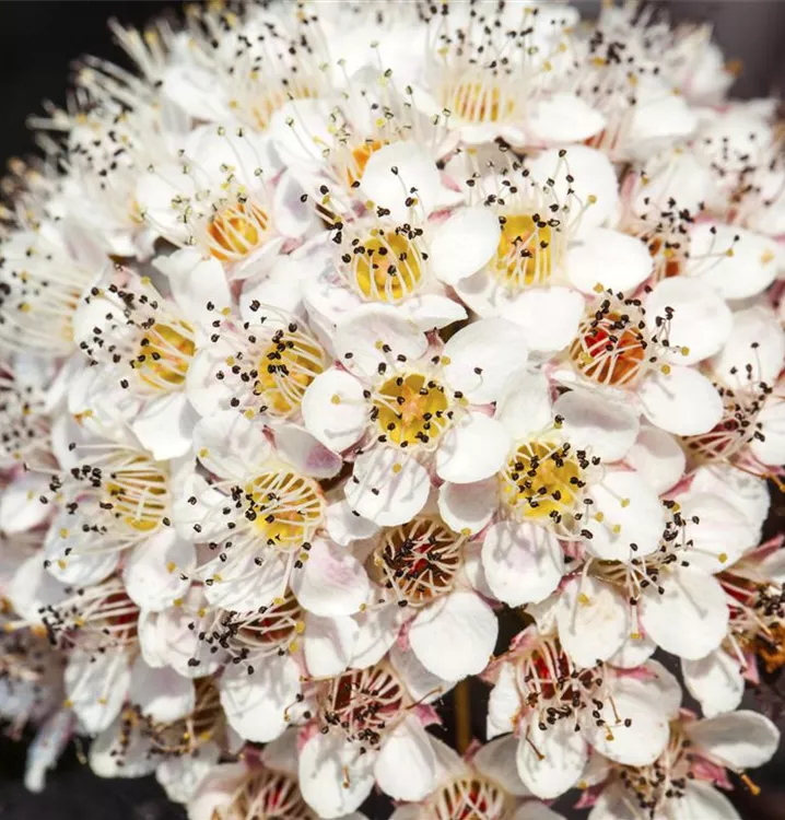 Die weißen Blüten der Fasanenspiere 'Summer Wine'® erscheinen in Doldentrauben von Juni bis Juli.