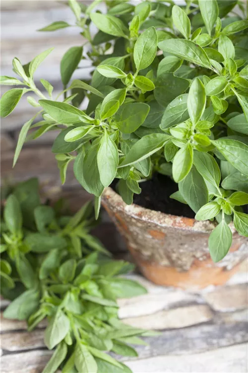 Der Majoran (Origanum majorana) ist eine Kräuterpflanze mit einem würzigen Geschmack. Seine hellgrünen Blätter sind eiförmig und ganzrandig. Für das optimale Wachstum des Majorans werden ein sonniger Standort und durchlässiger, nährstoffreicher Boden benötigt.