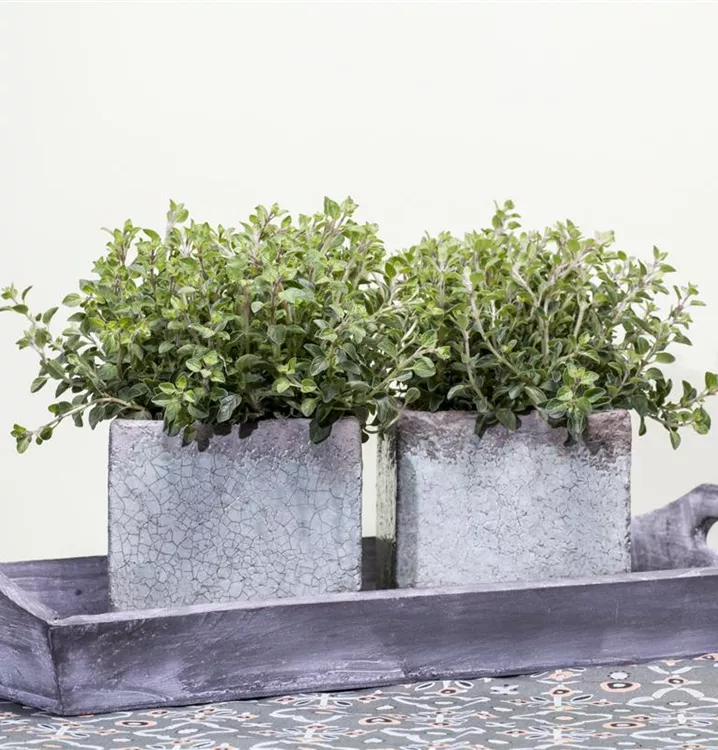 Zu viel Dünger schadet dem Kräuteraroma! Versorgen Sie Kräuter in Pflanzgefäßen einmal im Frühjahr mit Kräuterdünger. Im Garten ausgepflanzt, genügt eine Kompostgabe zum Saisonstart.