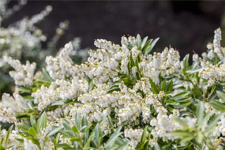 Das Schattenglöckchen 'Cupido' (Pieris japonica) ist ein buschiger, breiter Kleinstrauch, der weiße, in Rispen angeordnete Blüten hervorbringt. Sie erscheinen von März bis Mai. Seine Rinde ist rot-braun, streifenförmig eingerissen. An einem halbschattigen bis schattigen, windgeschützten Standort mit humosem, nährstoffreichem Boden erreicht es gewöhnlich eine Höhe von ca. 1 m und wird ca. 1,5 m breit.