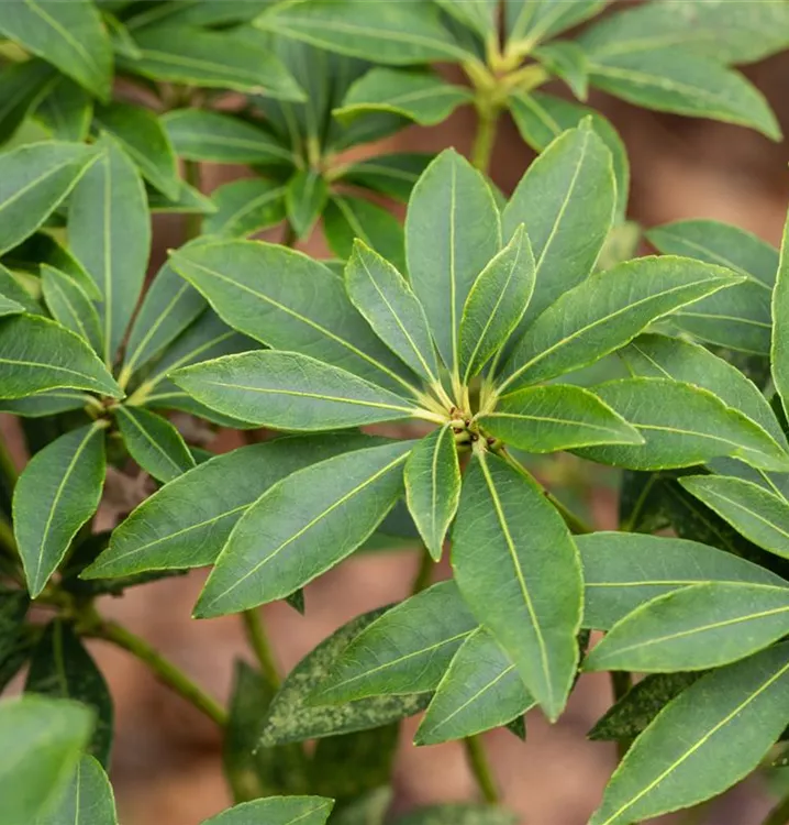 Pieris japonica 'Cupido' ist ein Flachwurzler und bildet, je nach Boden, fein verzweigte Wurzeln.