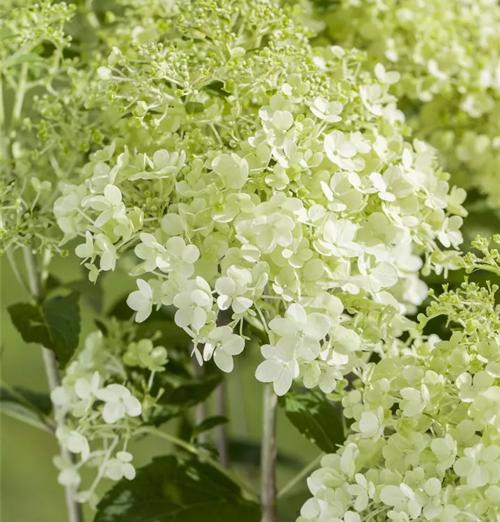 Die weißen Blüten der Rispenhortensie erscheinen in Rispen von Juli bis September. Diese sind angenehm duftend.