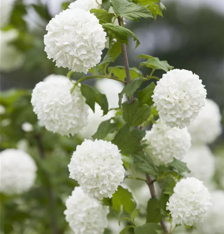 Der Gemeine Schneeball (Viburnum opulus) ist ein ausladender, lockerer Großstrauch mit dekorativen, roten Früchten, die sehr lange haften. Die Blüten erscheinen je nach Sorte in verschiedenen Farben.