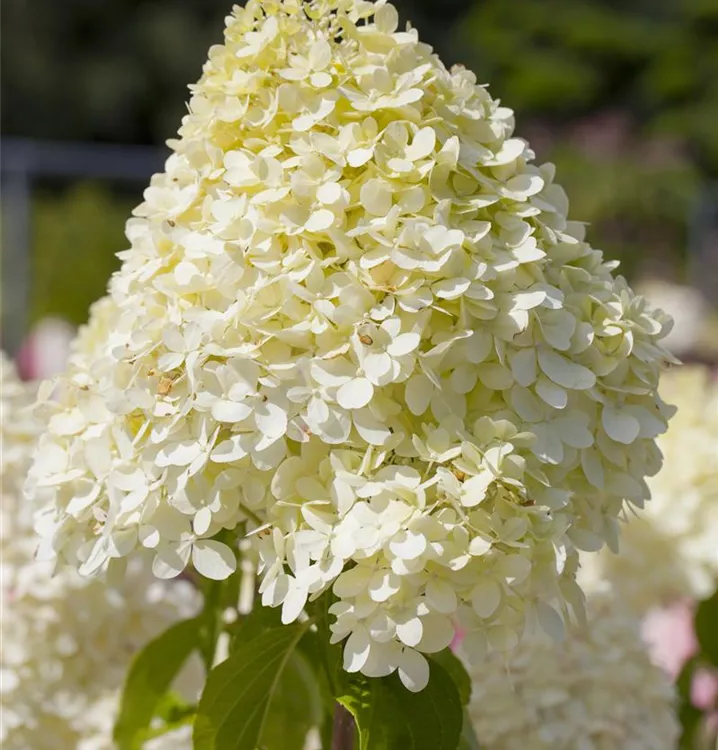 Die weißen Blüten der Rispenhortensie 'Limelight'(s) erscheinen in Rispen von August bis Oktober. Diese sind angenehm duftend.