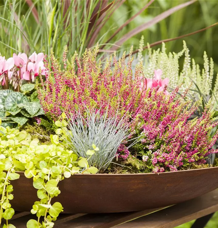 Die Besenheide (Calluna vulgaris) wird durch ihre unzähligen Blüten in vielen Farben jeden Garten verschönern. Gekonnt kombiniert mit anderen in Größe und Farbe passenden Pflanzen – in Kübeln oder Kästen, macht sie auch auf der Terrasse eine schöne Figur.