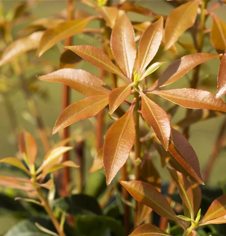 Pieris japonica 'Mountain Fire' ist ein Flachwurzler und bildet, je nach Boden, fein verzweigte Wurzeln.