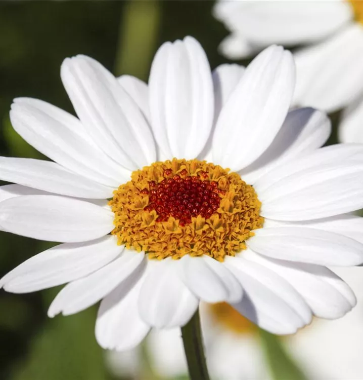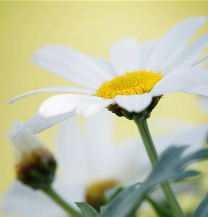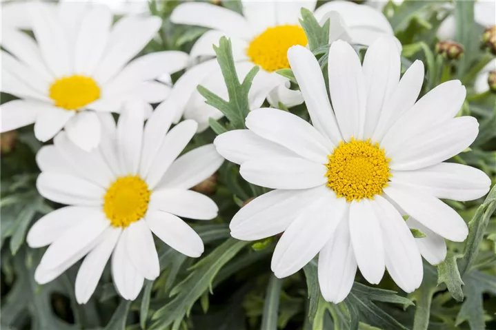 Die Strauchmargerite (Argyranthemum frutescens) ist eine beliebte Pflanze für den Balkon, die während der gesamten Saison unzählige weiße Blüten bildet. Ein sonniger Standort und ein durchlässiges Substrat werden bevorzugt.