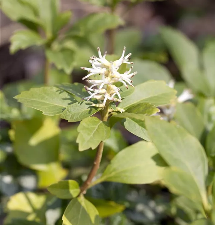 Die cremeweißen Blüten des Dickmännchen erscheinen in Ähren von April bis Mai.