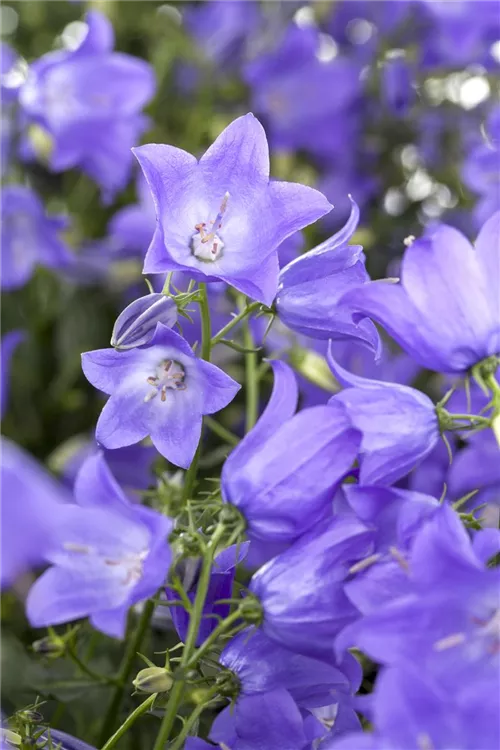Die aufrecht wachsende Glockenblume macht sich auf jeder Terrasse gut. Man versorgt sie mit lockerem, nährstoffreichem Boden, stellt sie in den hellen Halbschatten und bedenkt sie regelmäßig mit durchschnittlich viel Wasser. Ihre Gegenleistung kann sich sehen lassen. Von Juni bis zum September präsentiert die dankbare Blume mit der natürlichen Ausstrahlung ihre dekorativen Blüten.