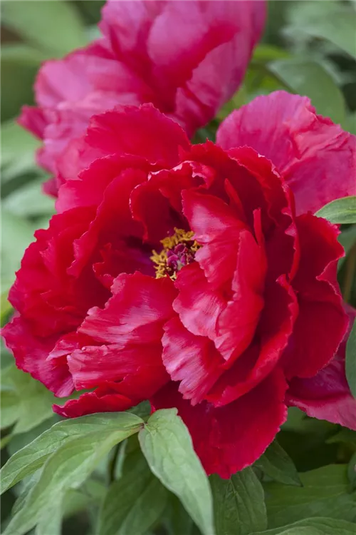 Die sommergrünen Blätter der Asiatische Pfingstrose sind dunkelgrün, gefingert.