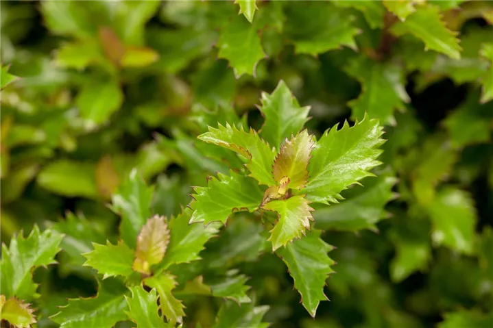 Der Ilex 'Little Rascal'® (Ilex) ein kompakter, rundlicher Kleinstrauch, der, je nach Sorte, Blüten in verschiedenen Farben hervorbringt. An einem halbschattigen bis schattigen Standort erreicht er gewöhnlich eine Höhe von ca. 70 cm und wird ca. 70 cm breit. An den Boden stellt der Ilex 'Little Rascal'® keine besonderen Ansprüche.