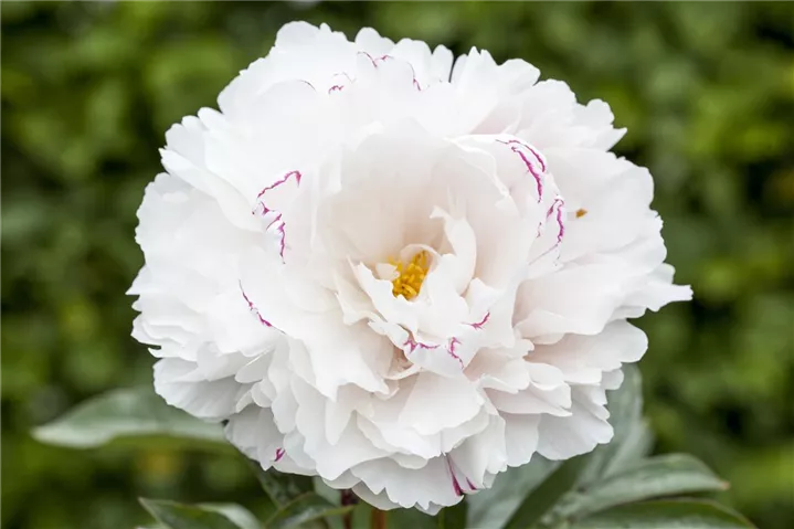 Paeonia lactiflora, weiß bildet gefüllte, schalenförmige, weiße Blüten ab Mai. Diese verströmen einen angenehmen Duft.