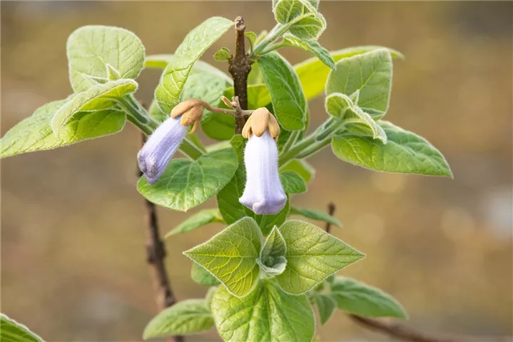 Die lilafarbenen, trichterförmigen Blüten des Blauglockenbaum erscheinen in Rispen von April bis Mai. Diese werden etwa 20 - 30 cm groß und sind angenehm duftend.