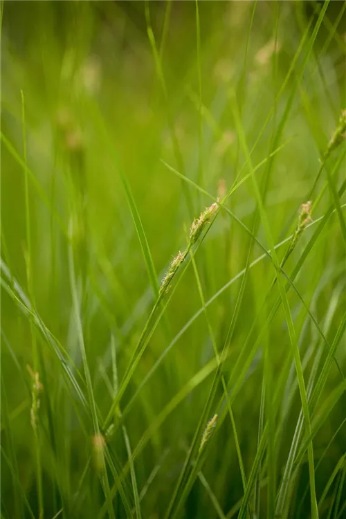 Die wintergrünen Blätter der Bräunliche Segge sind mittelgrün, lineal.