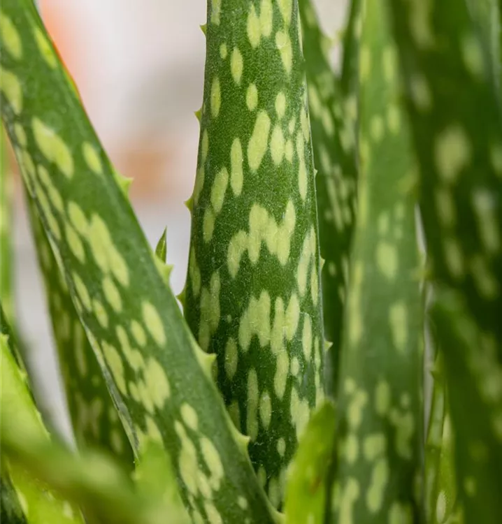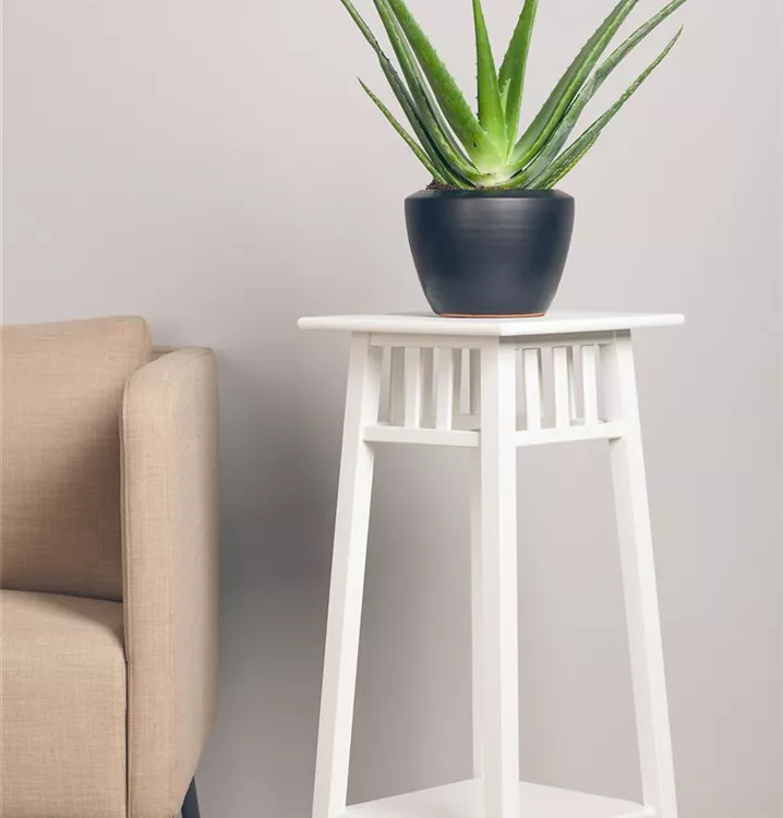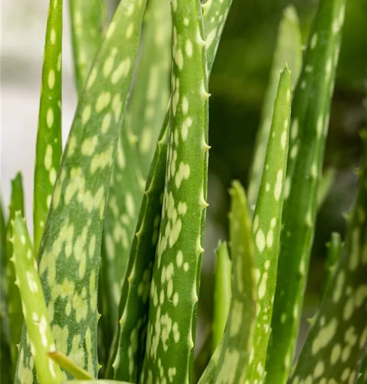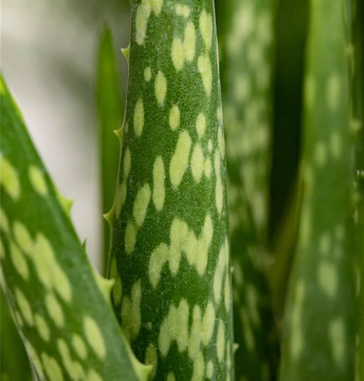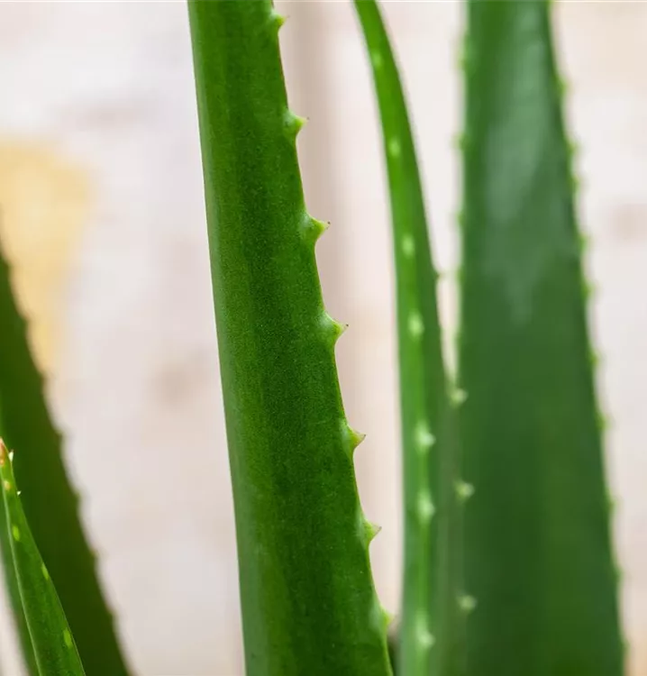 Die Echte Aloe (Aloe vera) zählt zu den pflegeleichten Pflanzen und besitzt hellgrüne, dickfleischige Blätter. Diese rosettenartige und sukkulente Pflanze gedeiht am besten an einem sonnigen Standort.