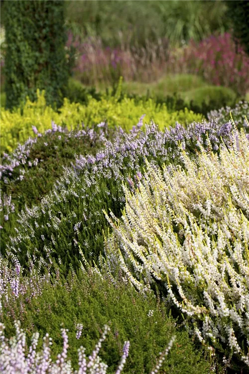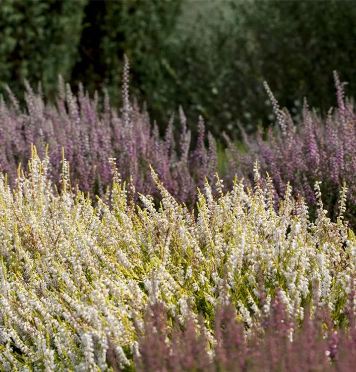 Die Besenheide (Calluna vulgaris) wird durch ihre unzähligen in vielen Farben Blüten jeden Garten verschönern. Gekonnt kombiniert mit anderen in Größe und Farbe passenden Pflanzen – in Kübeln oder Kästen, macht sie auch auf der Terrasse eine schöne Figur.