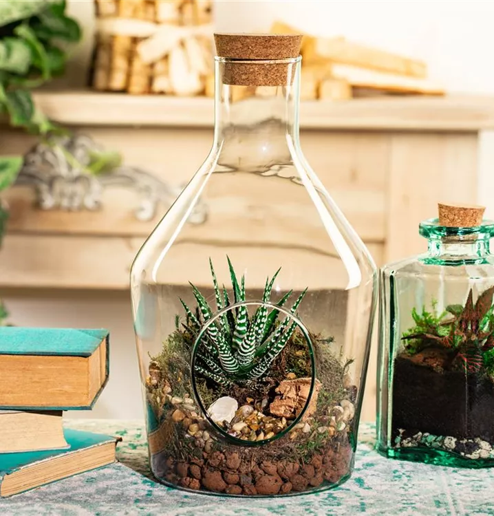 Die Haworthie (Haworthia fasciata) ist eine Pflanze mit grün-weißen, lanzettlichen, gezähnten Blättern. Die röhrenförmigen Blüten erscheinen in Ähren von Januar bis Dezember. Diese rosettenartige und sukkulente Pflanze gedeiht am besten an einem sonnigen Standort.